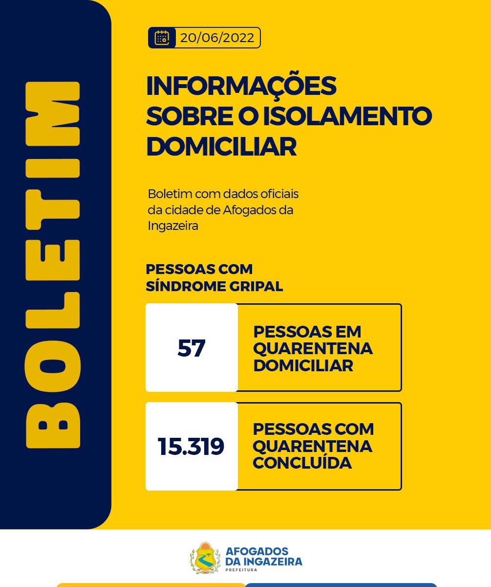 A Prefeitura de Afogados da Ingazeira informa que entre os dias 14 e 20/06 foram notificados 95 casos novos para a COVID-19 em nosso município.