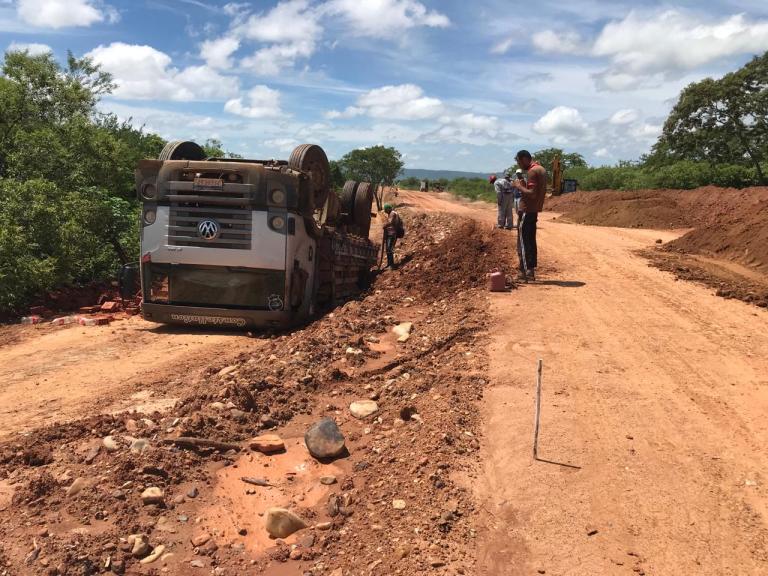 Um caminhão placas PFO 6F67 tombou na Estrada de Ibitiranga esta manhã.